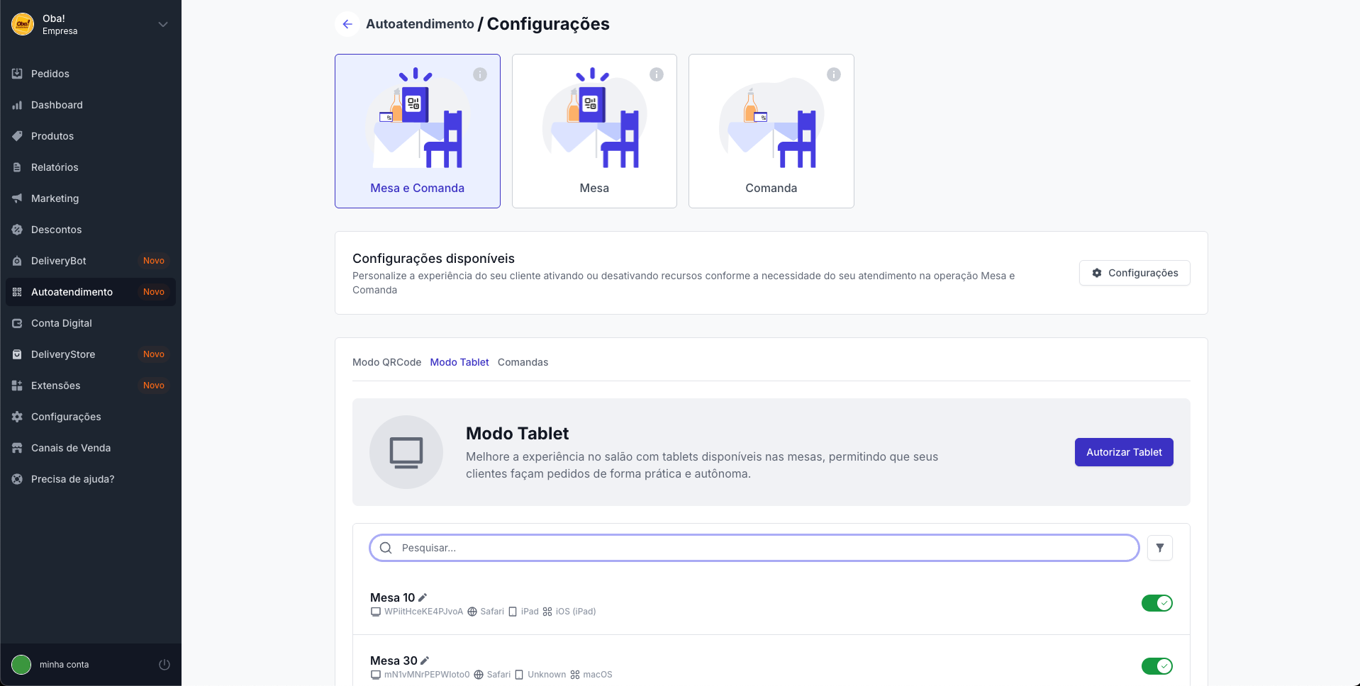 Apresentamos uma novidade que muitos esperavam: a possibilidade de operar de maneira mais simplificada, sem a necessidade de comando tradicional ou a leitura de múltiplos QRCodes para concluir um pedido. Com o objetivo de otimizar o processo e proporcionar uma experiência mais fluida, introduzimos dois novos métodos de operação: o método Mesa e o método Comanda.