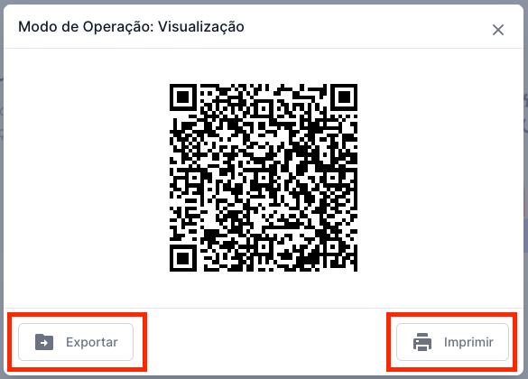 Ao gerar o **QRCode de Visualização**, será exibida com as seguintes opções: