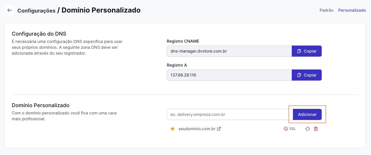 ### Você precisa realizar a configuração DNS específica para usar seu próprio domínio. Veja como configurar:
