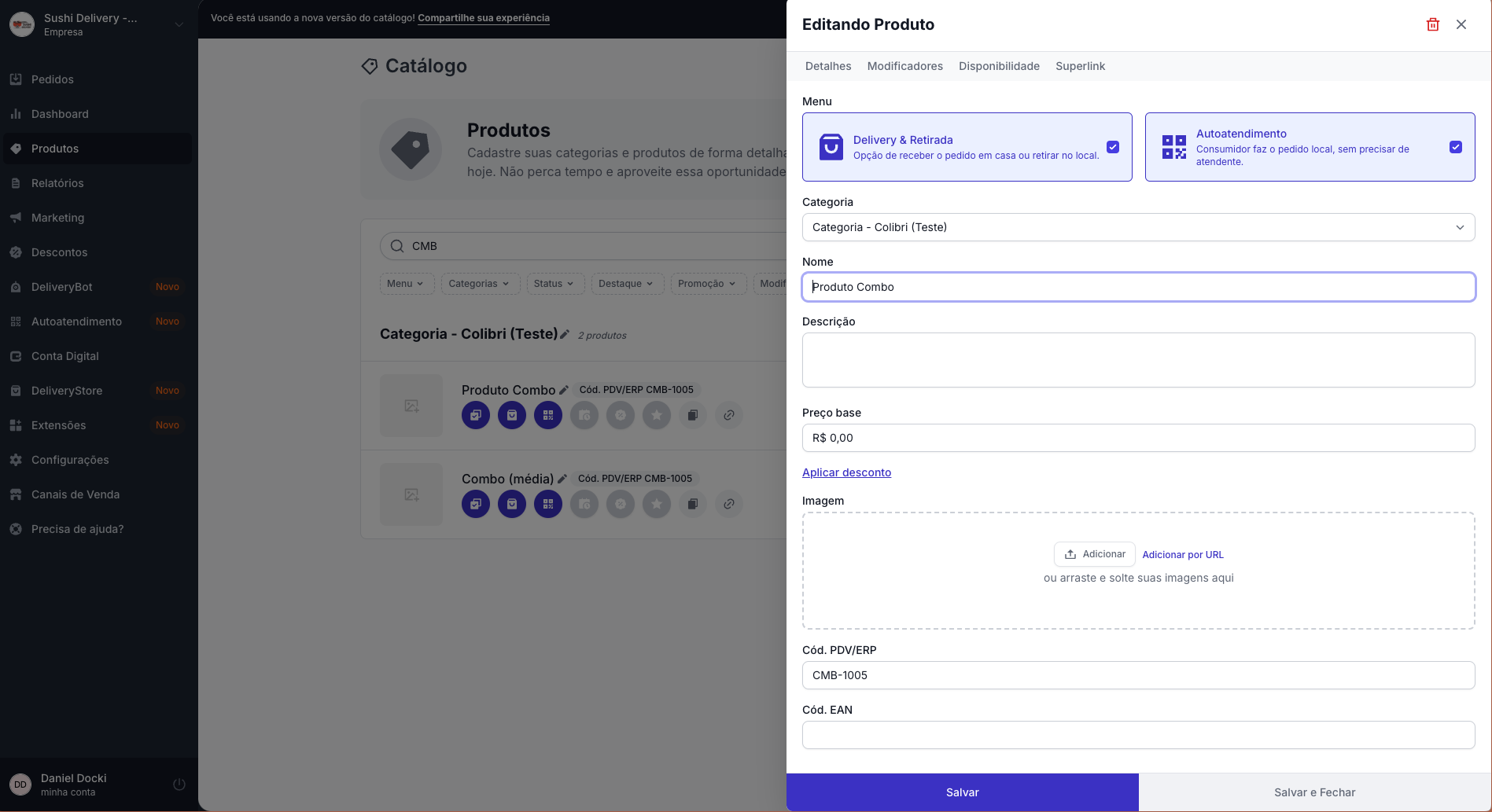 Um produto combo é quando ele tem modificadores, então você deve informar o código da opção no campo "Cód. ERP" no seu delivery com o início **"CMB"**, exemplo de código **"CMB-2010".**