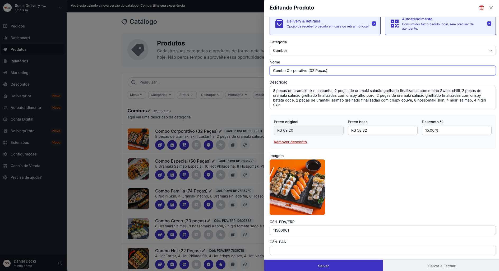Um produto normal é quando ele não é combo, nesse caso é só informar o código do produto no campo "Cód. ERP" no seu delivery.