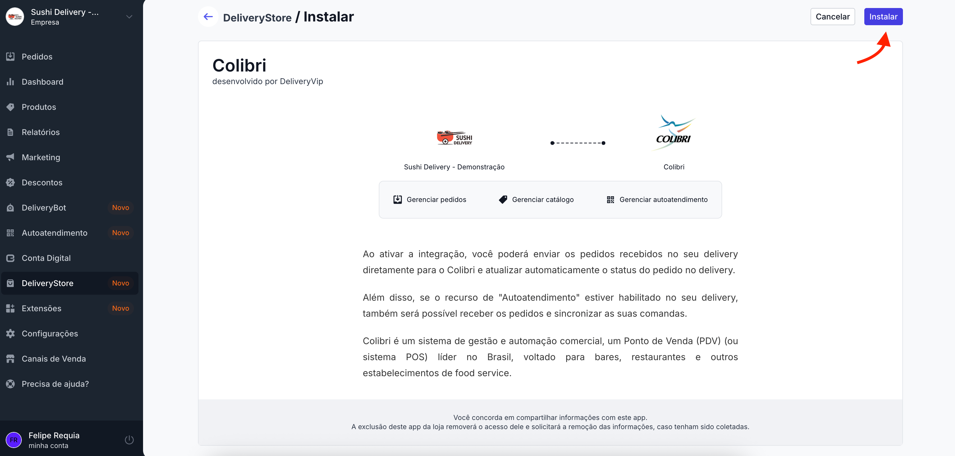 Ao ativar a integração, você poderá enviar os pedidos recebidos no seu delivery diretamente para o Colibri e atualizar automaticamente o status do pedido no delivery.